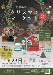 ホワイト グリーン かわいい クリスマス マーケット A4 チラシ