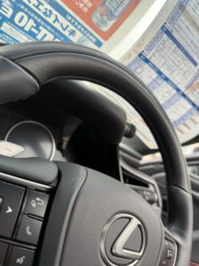 本木目+本革の墨ブラックウォールナットステアリング、