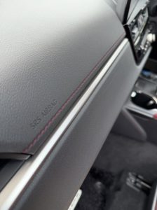 クリムゾンステッチの本革シート、