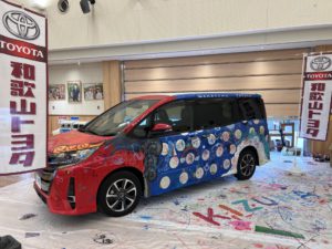 多くのお子さまに参加いただいたお絵描きCarは、現在田辺店に展示しております!
