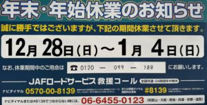さて、今年も終わりということで、年末年始のお休みのお知らせでございます。